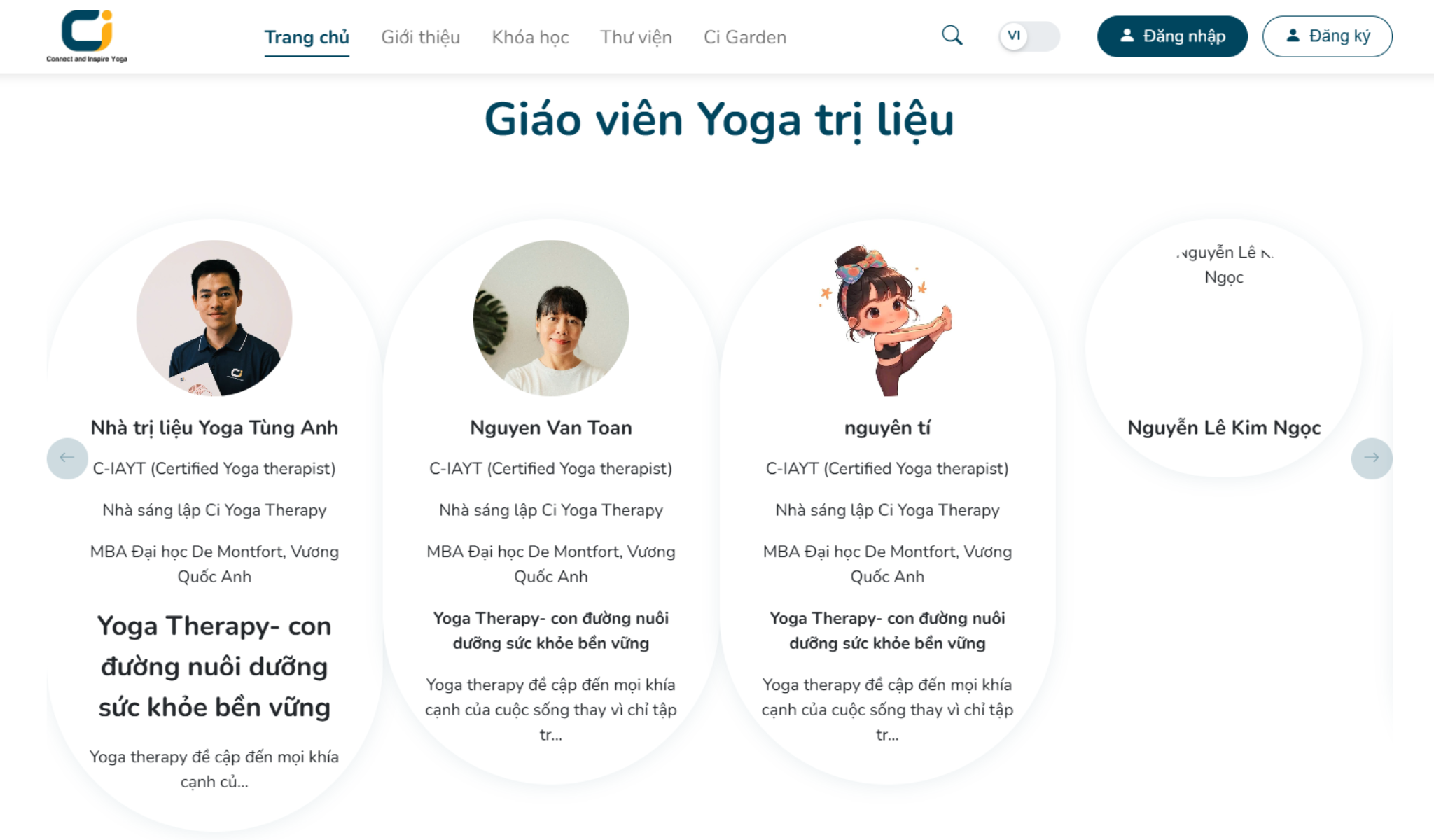 • Trang chủ: Giới thiệu tổng quan về Ciyoga, các khóa học nổi bật, lợi ích Yoga trị liệu và lộ trình luyện tập dành cho từng đối tượng.