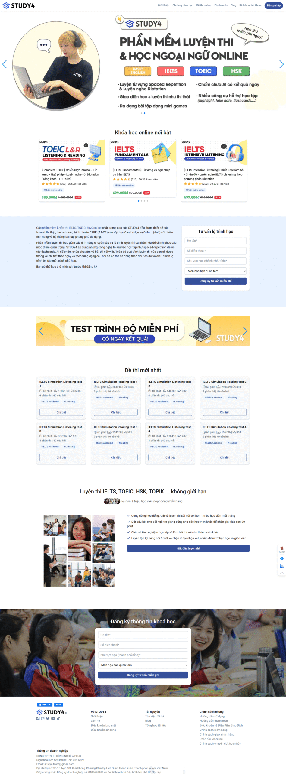 Mẫu website có giao diện trẻ trung, dễ sử dụng, giúp giới thiệu khóa học, lộ trình học tập và hỗ trợ đăng ký online nhanh chóng.