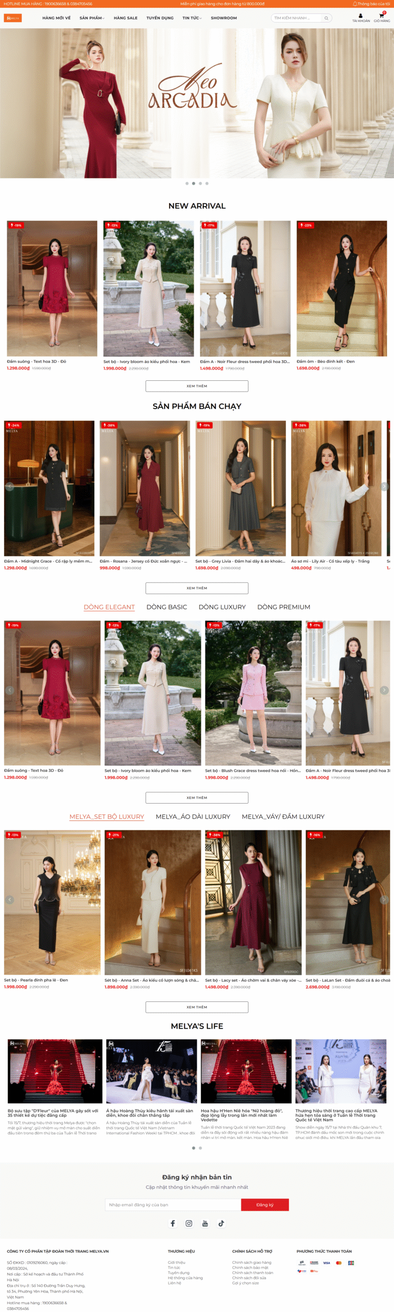 Mẫu website được thiết kế tinh tế, nữ tính, tôn lên các bộ sưu tập thời trang hiện đại. Giao diện gọn gàng, dễ sử dụng, hỗ trợ mua sắm và đặt hàng nhanh chóng.
